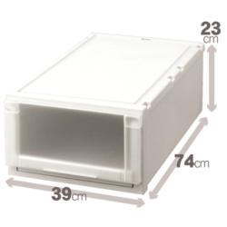 あと、アイリスオーヤマのHGロングチェストは真っ白でノッペリとした感じですが、天馬のフィッツユニットケースは引出前板が半透明でスッキリしています。現在は中身が見えないホワイト色もあります。